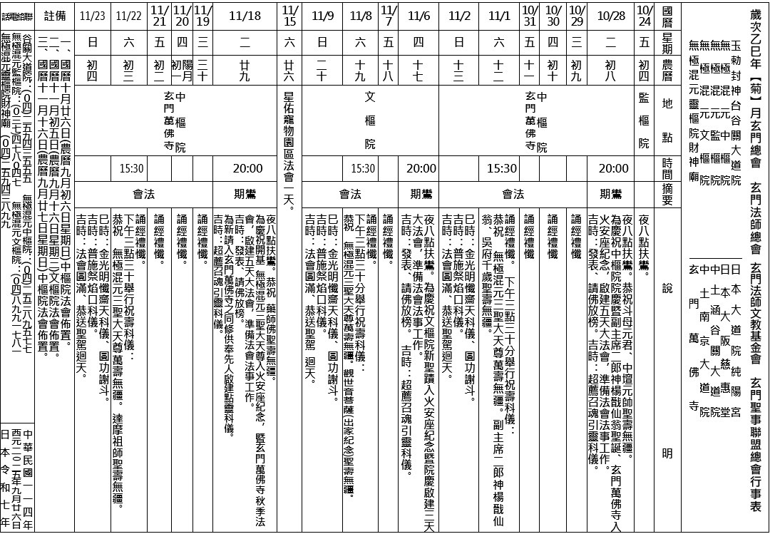 114年10、11月 (菊月)玄門行事表